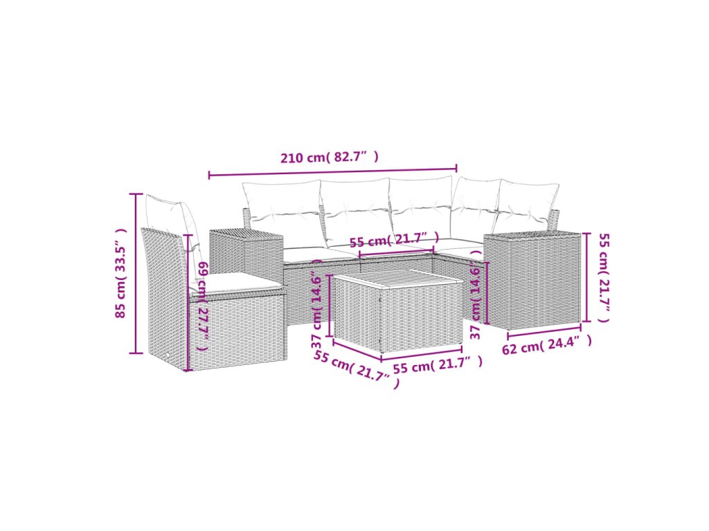 Tato zahradní sedací souprava je dokonalým doplňkem vaší zahrady, terasy nebo dvorku a poskytne vám pohodlné a příjemné místo, kde si můžete povídat s rodinou a přáteli nebo jen tak odpočívat a užívat si pobyt venku.