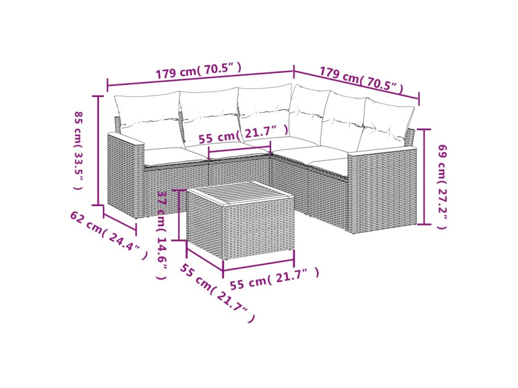 Tato zahradní sedací souprava je dokonalým doplňkem vaší zahrady, terasy nebo dvorku a poskytne vám pohodlné a příjemné místo, kde si můžete povídat s rodinou a přáteli nebo jen tak odpočívat a užívat si pobyt venku.