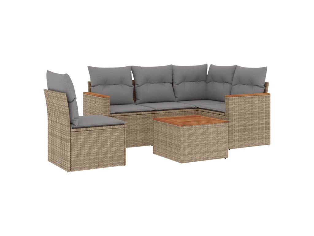 6dílná zahradní sedací souprava s poduškami béžová polyratan 3258384