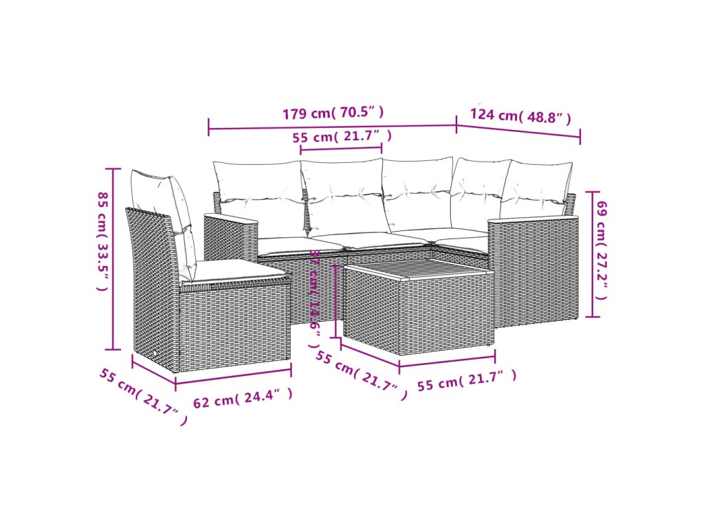 Tato zahradní sedací souprava je dokonalým doplňkem vaší zahrady, terasy nebo dvorku a poskytne vám pohodlné a příjemné místo, kde si můžete povídat s rodinou a přáteli nebo jen tak odpočívat a užívat si pobyt venku.