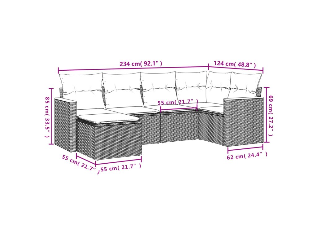 Tato zahradní sedací souprava je dokonalým doplňkem vaší zahrady, terasy nebo dvorku a poskytne vám pohodlné a příjemné místo, kde si můžete povídat s rodinou a přáteli nebo jen tak odpočívat a užívat si pobyt venku.