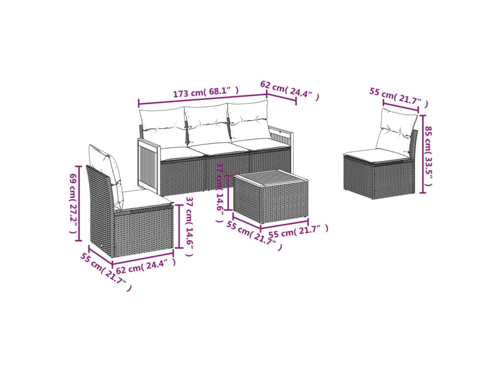 Tato zahradní sedací souprava je dokonalým doplňkem vaší zahrady, terasy nebo dvorku a poskytne vám pohodlné a příjemné místo, kde si můžete povídat s rodinou a přáteli nebo jen tak odpočívat a užívat si pobyt venku.