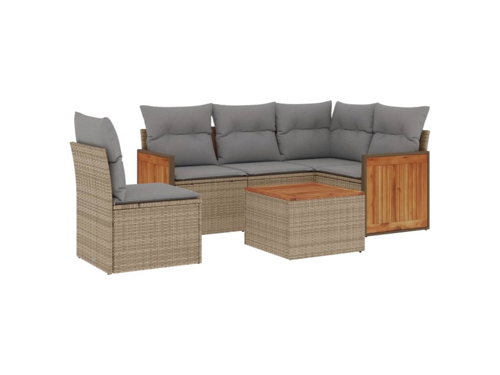 6dílná zahradní sedací souprava s poduškami béžová polyratan 3260064