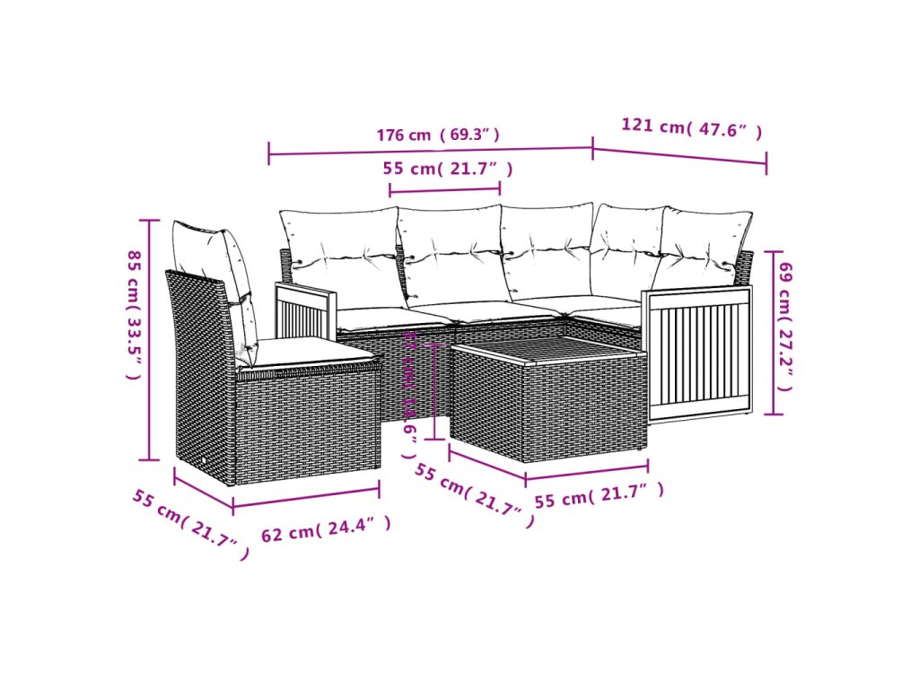 Tato zahradní sedací souprava je dokonalým doplňkem vaší zahrady, terasy nebo dvorku a poskytne vám pohodlné a příjemné místo, kde si můžete povídat s rodinou a přáteli nebo jen tak odpočívat a užívat si pobyt venku.