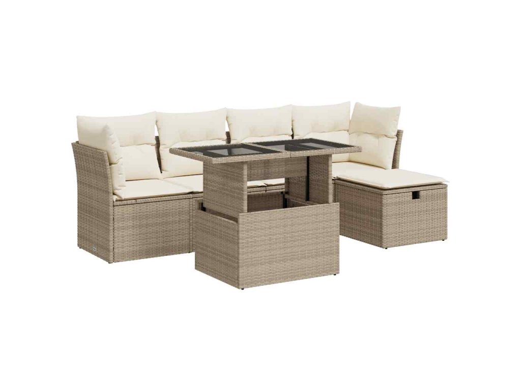 6dílná zahradní sedací souprava s poduškami béžová polyratan 3327768