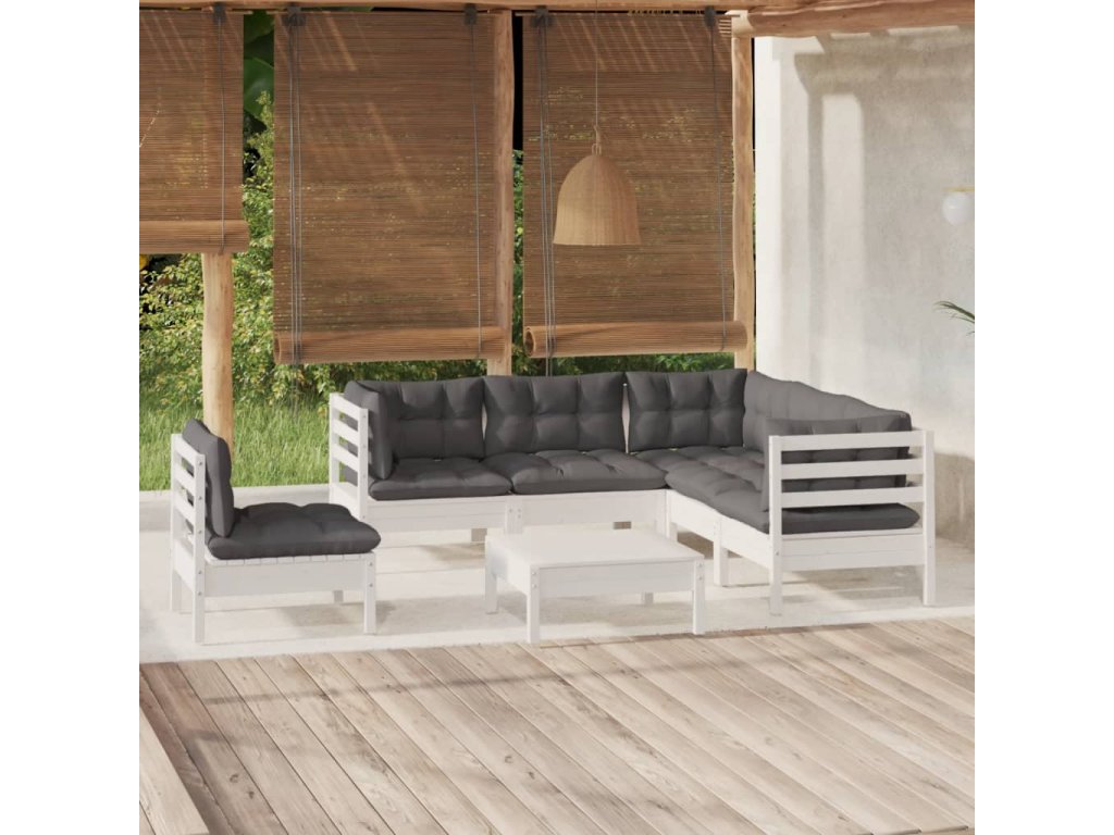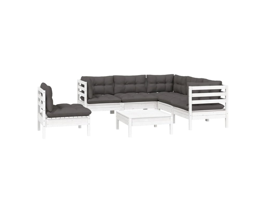 6dílná zahradní sedací souprava s poduškami bílá borovice 3096413