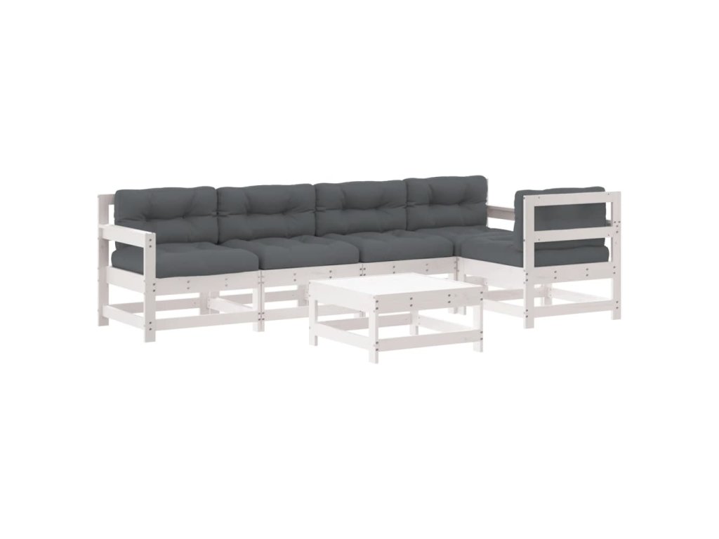 6dílná zahradní sedací souprava s poduškami bílá masivní dřevo 3185991