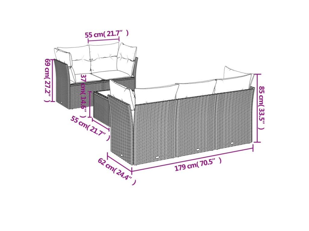 Tato zahradní sedací souprava je dokonalým doplňkem vaší zahrady, terasy nebo dvorku a poskytne vám pohodlné a příjemné místo, kde si můžete povídat s rodinou a přáteli nebo jen tak odpočívat a užívat si pobyt venku.