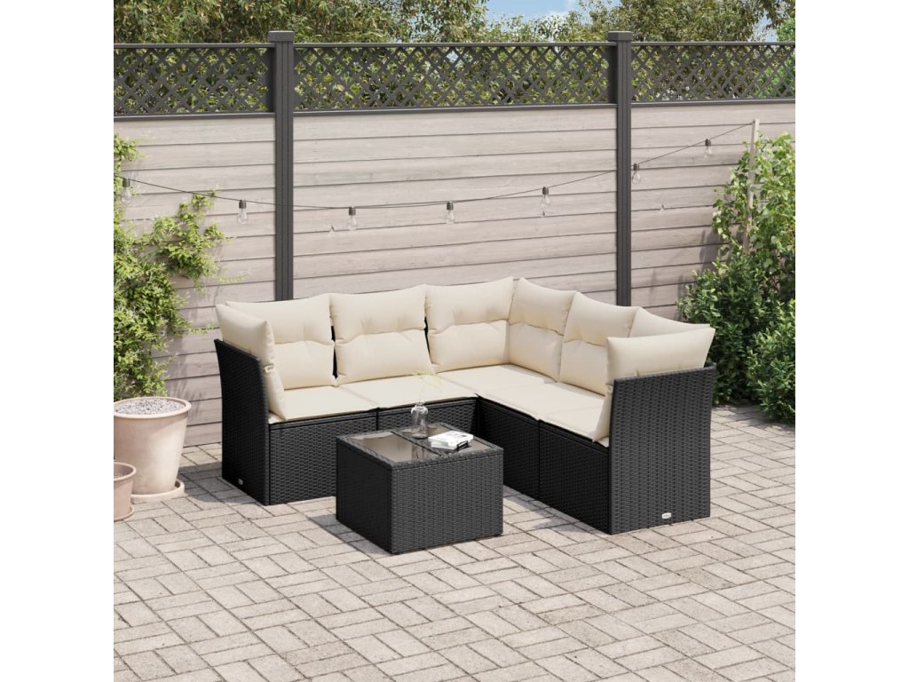 6dílná zahradní sedací souprava s poduškami černá polyratan 3217626