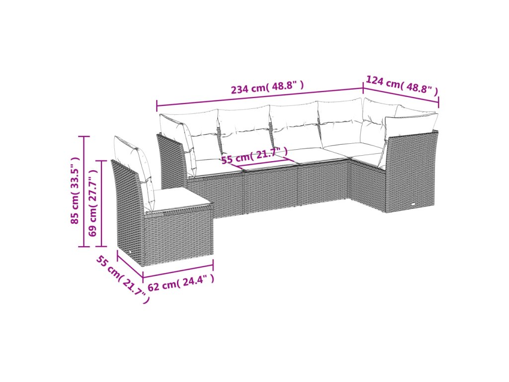 6dílná zahradní sedací souprava s poduškami černá polyratan 3217696