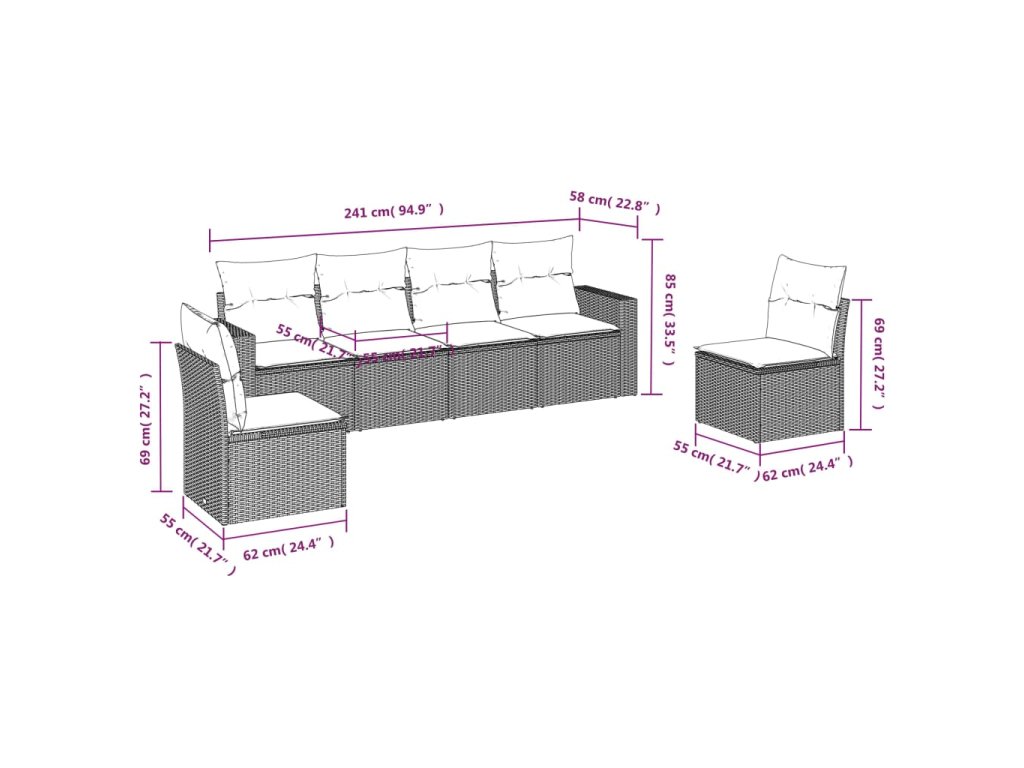 6dílná zahradní sedací souprava s poduškami černá polyratan 3218795