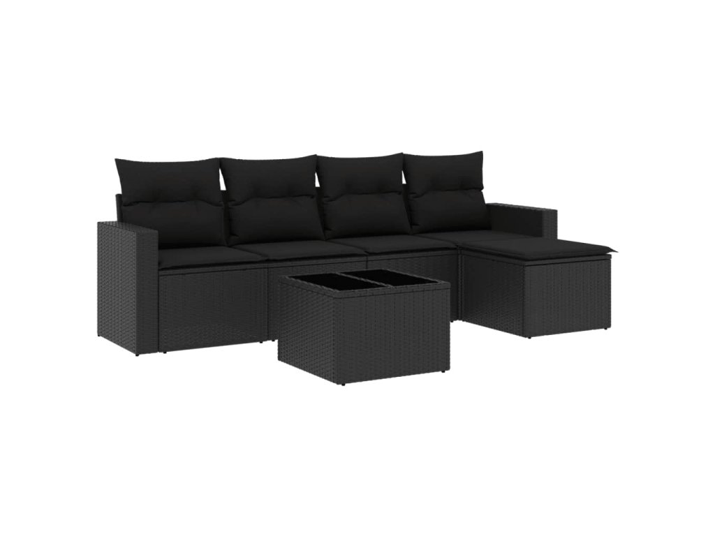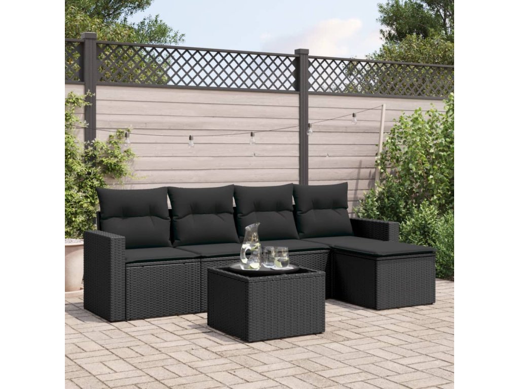 6dílná zahradní sedací souprava s poduškami černá polyratan 3218885