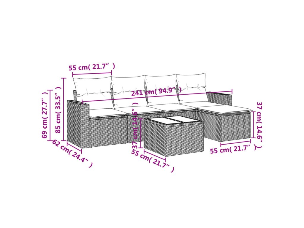 Tato zahradní sedací souprava je dokonalým doplňkem vaší zahrady, terasy nebo dvorku a poskytne vám pohodlné a příjemné místo, kde si můžete povídat s rodinou a přáteli nebo jen tak odpočívat a užívat si pobyt venku.