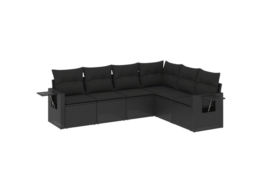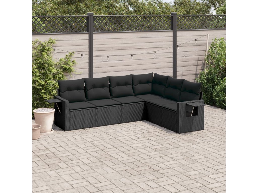 6dílná zahradní sedací souprava s poduškami černá polyratan 3220204