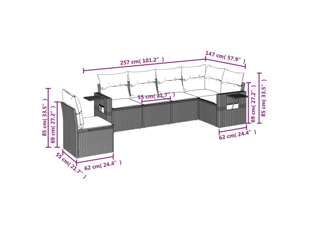 Tato zahradní sedací souprava je dokonalým doplňkem vaší zahrady, terasy nebo dvorku a poskytne vám pohodlné a příjemné místo, kde si můžete povídat s rodinou a přáteli nebo jen tak odpočívat a užívat si pobyt venku.
