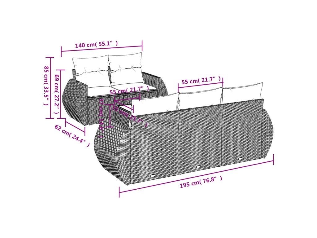 Tato zahradní sedací souprava je dokonalým doplňkem vaší zahrady, terasy nebo dvorku a poskytne vám pohodlné a příjemné místo, kde si můžete povídat s rodinou a přáteli nebo jen tak odpočívat a užívat si pobyt venku.
