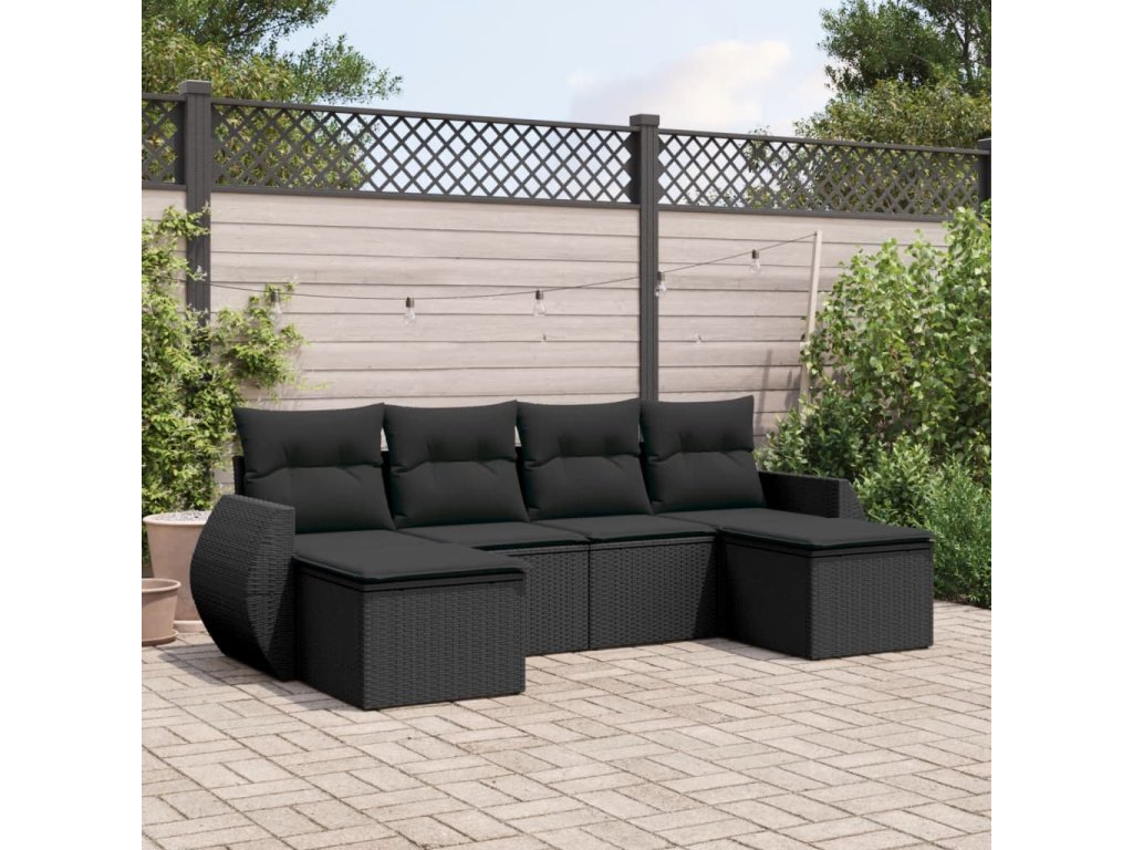 6dílná zahradní sedací souprava s poduškami černá polyratan 3221714