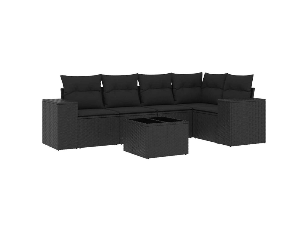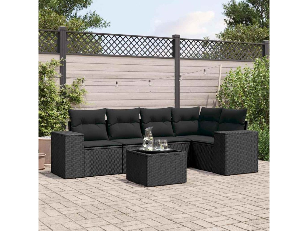 6dílná zahradní sedací souprava s poduškami černá polyratan 3222534