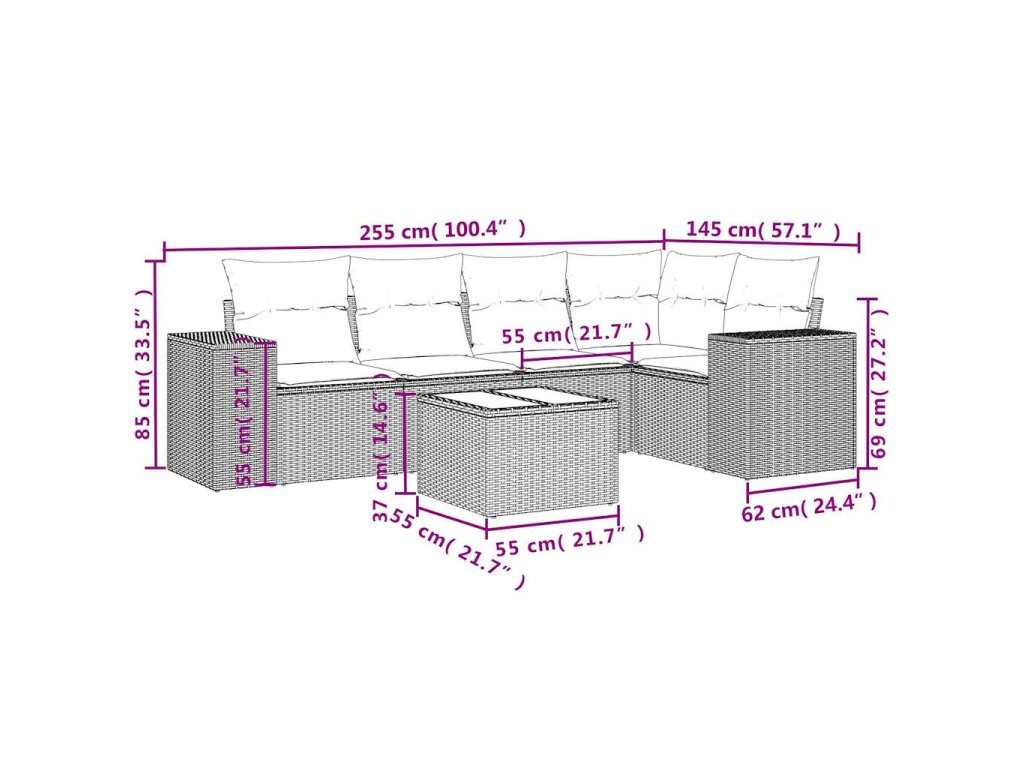 Tato zahradní sedací souprava je dokonalým doplňkem vaší zahrady, terasy nebo dvorku a poskytne vám pohodlné a příjemné místo, kde si můžete povídat s rodinou a přáteli nebo jen tak odpočívat a užívat si pobyt venku.