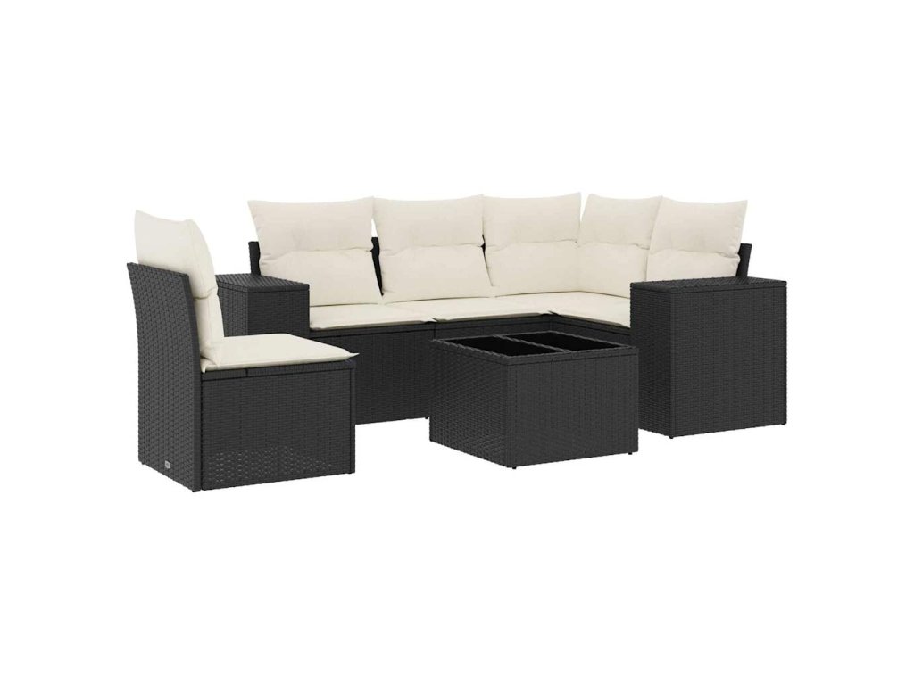 6dílná zahradní sedací souprava s poduškami černá polyratan 3222585