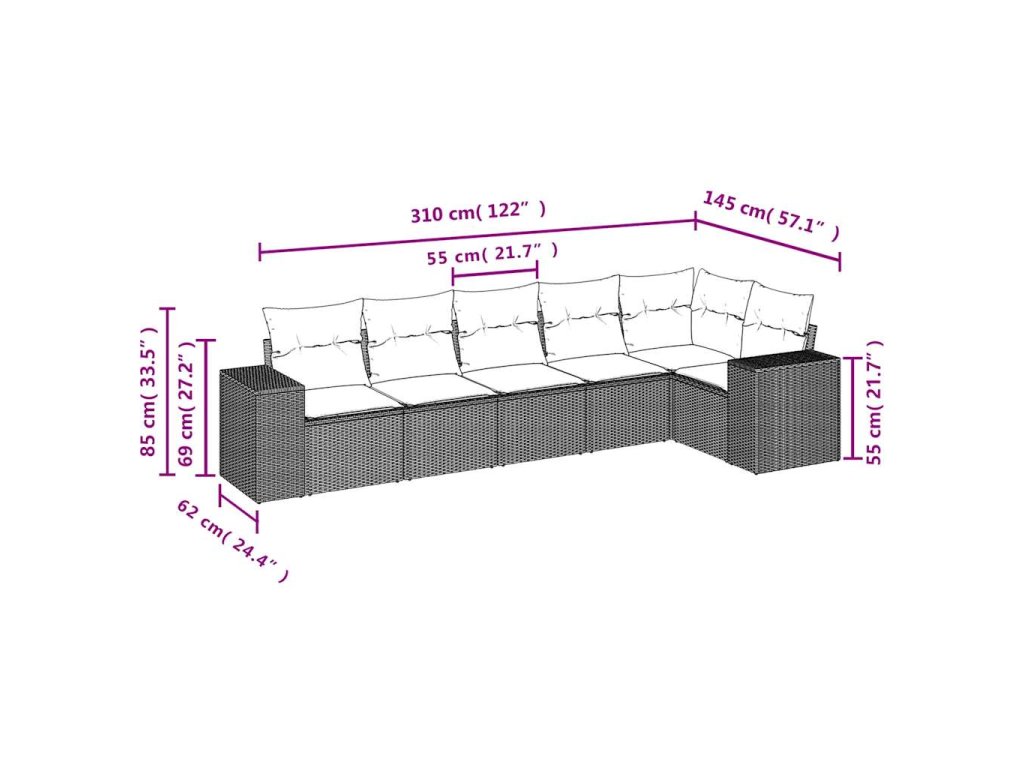 Tato zahradní sedací souprava je dokonalým doplňkem vaší zahrady, terasy nebo dvorku a poskytne vám pohodlné a příjemné místo, kde si můžete povídat s rodinou a přáteli nebo jen tak odpočívat a užívat si pobyt venku.