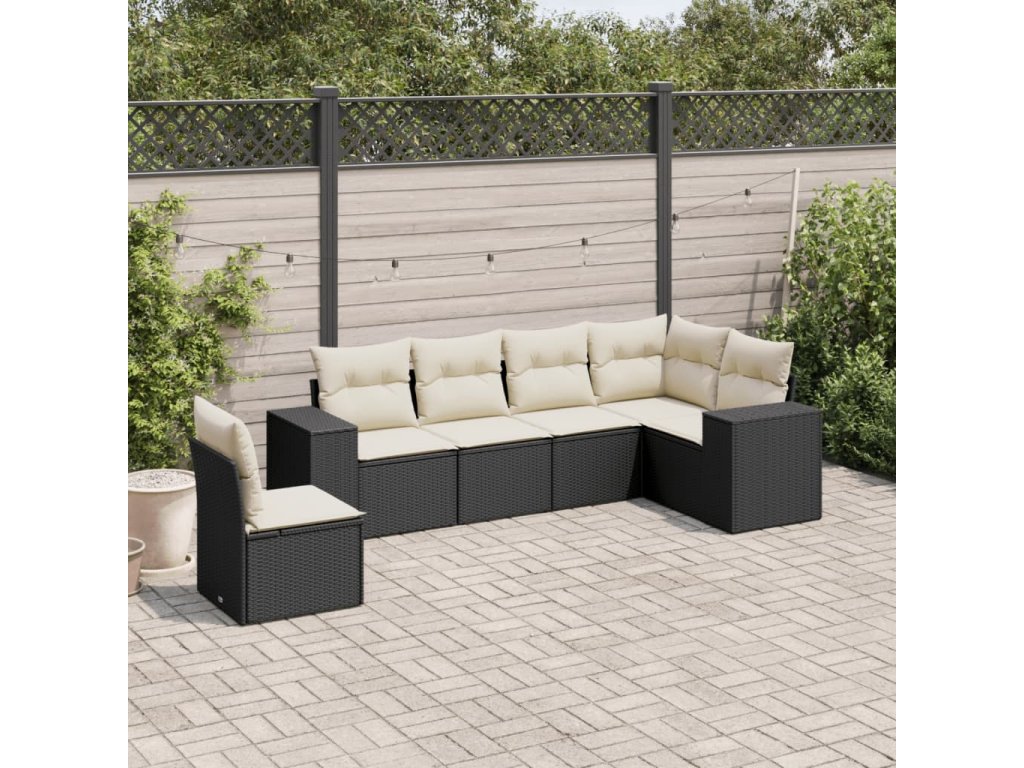 6dílná zahradní sedací souprava s poduškami černá polyratan 3222625