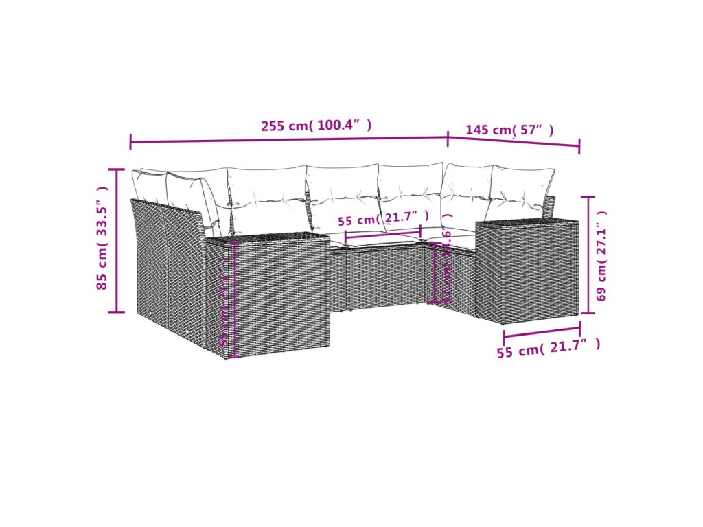 Tato zahradní sedací souprava je dokonalým doplňkem vaší zahrady, terasy nebo dvorku a poskytne vám pohodlné a příjemné místo, kde si můžete povídat s rodinou a přáteli nebo jen tak odpočívat a užívat si pobyt venku.