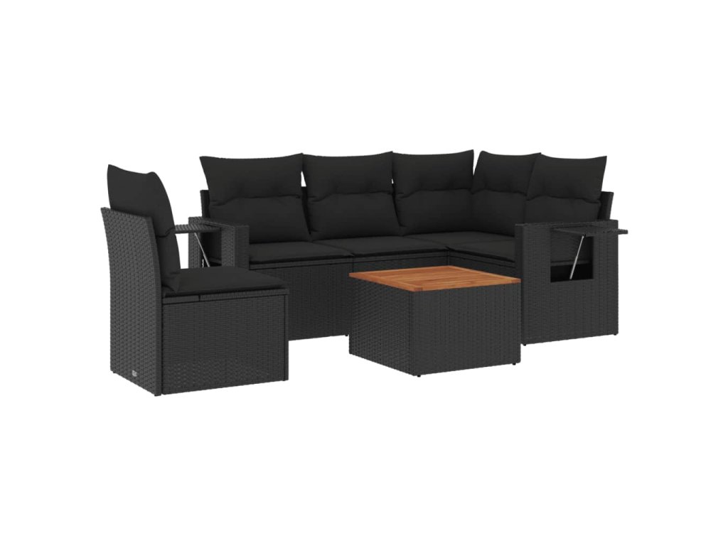 6dílná zahradní sedací souprava s poduškami černá polyratan 3224564