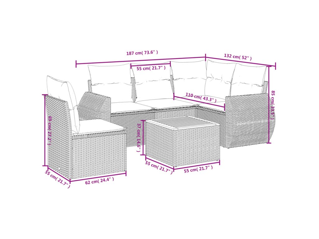 Tato zahradní sedací souprava je dokonalým doplňkem vaší zahrady, terasy nebo dvorku a poskytne vám pohodlné a příjemné místo, kde si můžete povídat s rodinou a přáteli nebo jen tak odpočívat a užívat si pobyt venku.