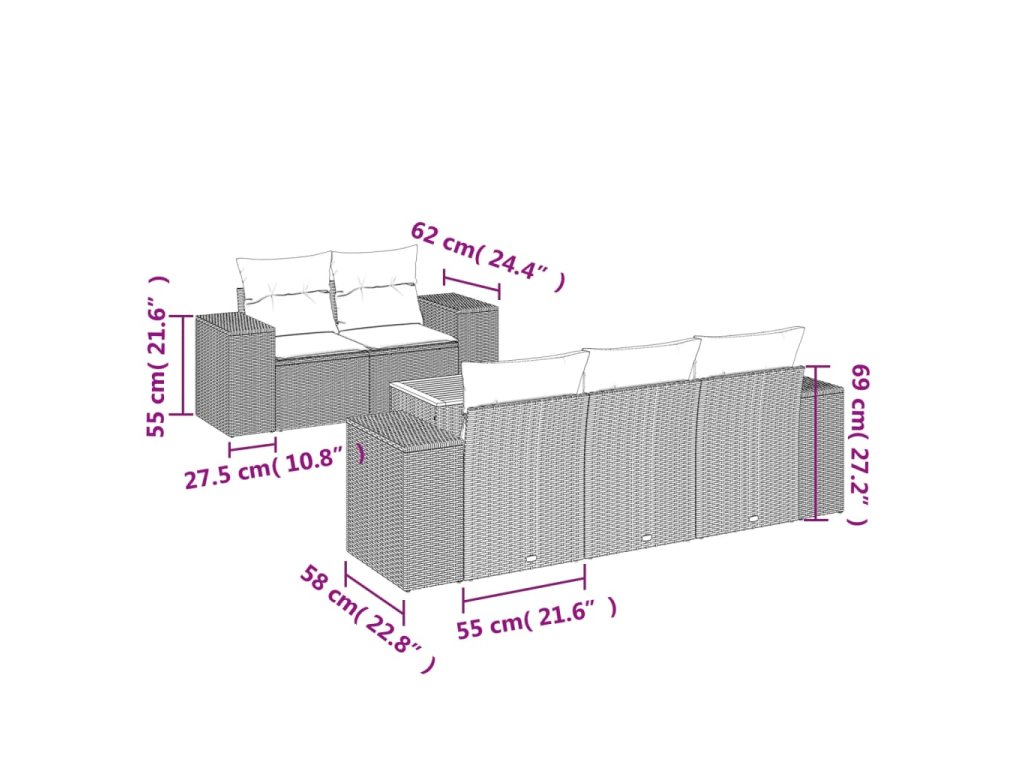 Tato zahradní sedací souprava je dokonalým doplňkem vaší zahrady, terasy nebo dvorku a poskytne vám pohodlné a příjemné místo, kde si můžete povídat s rodinou a přáteli nebo jen tak odpočívat a užívat si pobyt venku.
