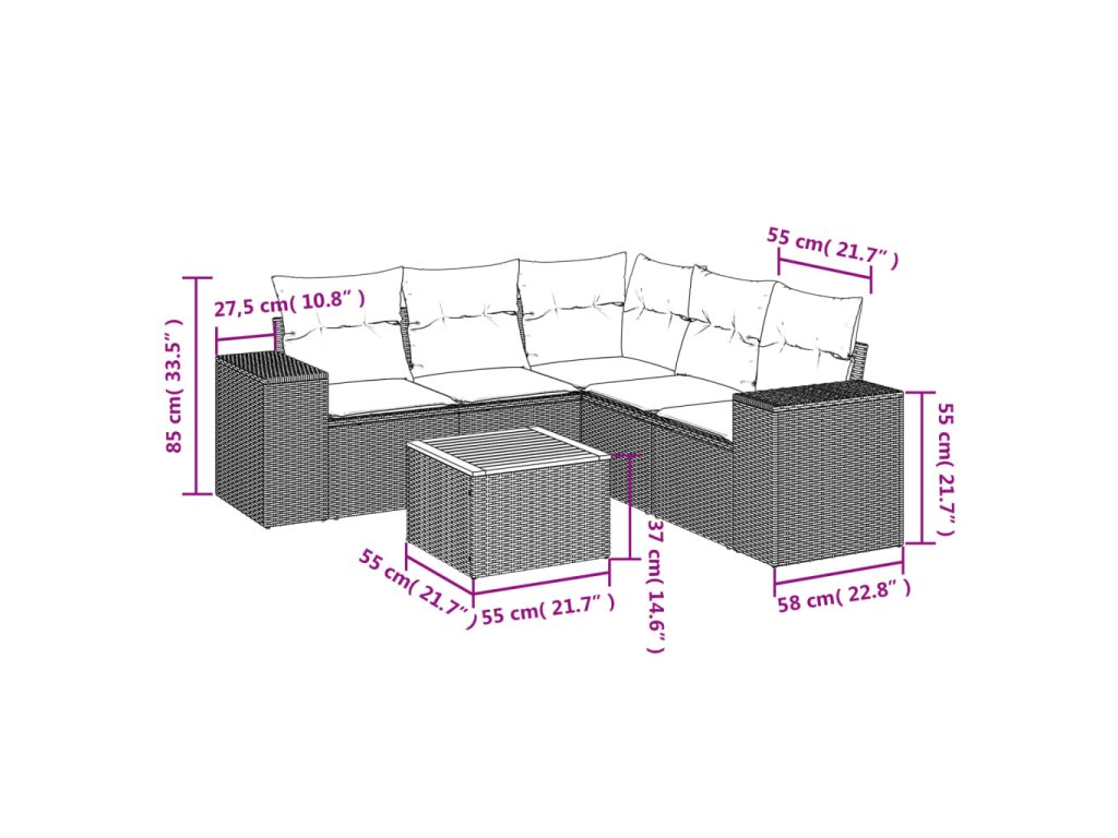 6dílná zahradní sedací souprava s poduškami černá polyratan 3225440