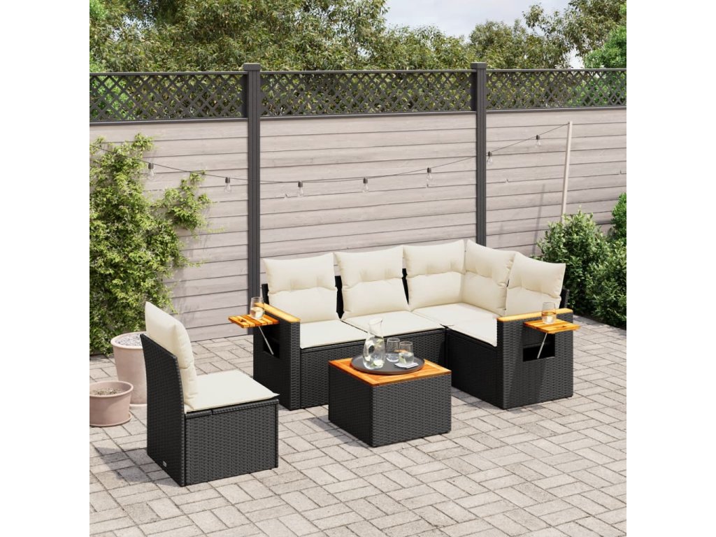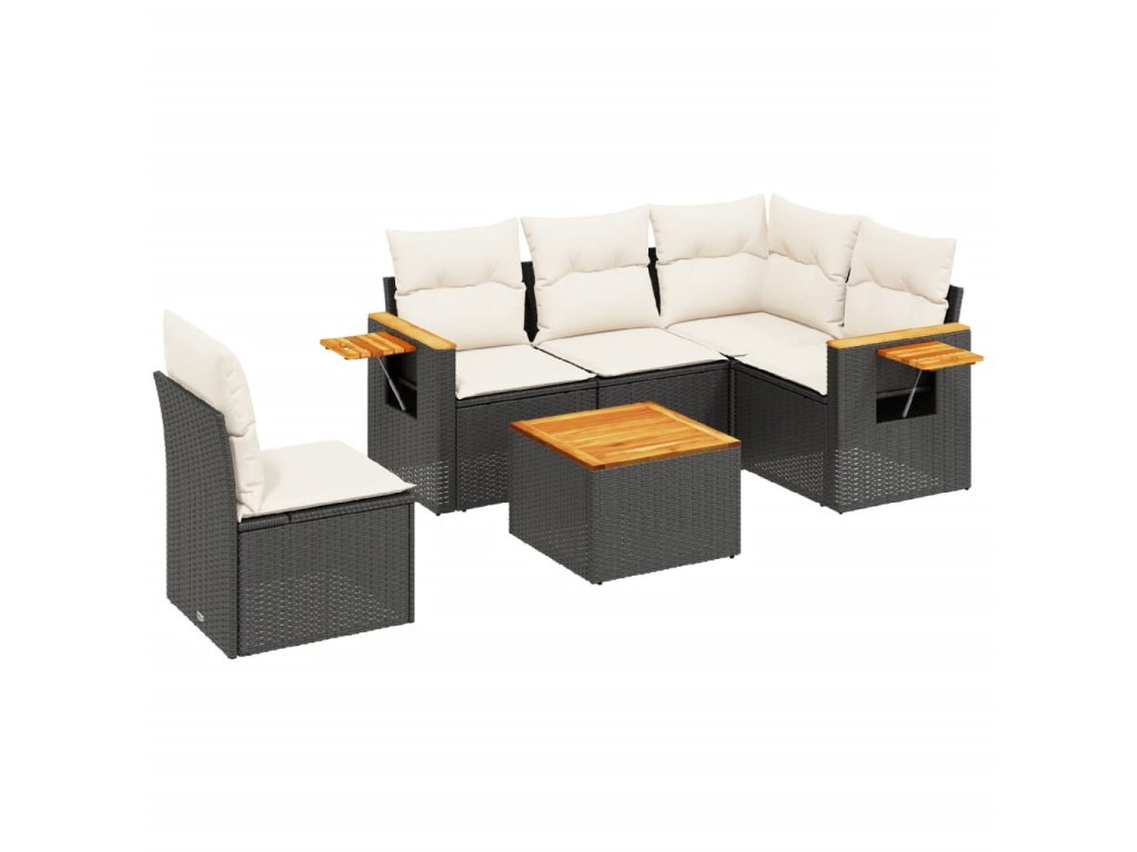 6dílná zahradní sedací souprava s poduškami černá polyratan 3226819