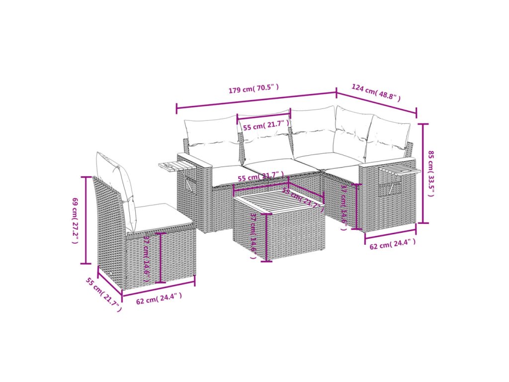 Tato zahradní sedací souprava je dokonalým doplňkem vaší zahrady, terasy nebo dvorku a poskytne vám pohodlné a příjemné místo, kde si můžete povídat s rodinou a přáteli nebo jen tak odpočívat a užívat si pobyt venku.