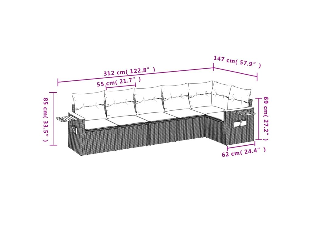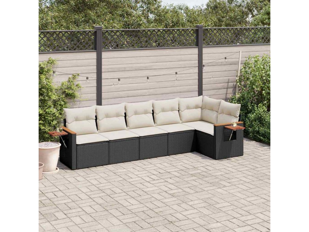 6dílná zahradní sedací souprava s poduškami černá polyratan 3226826