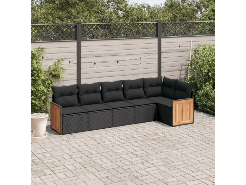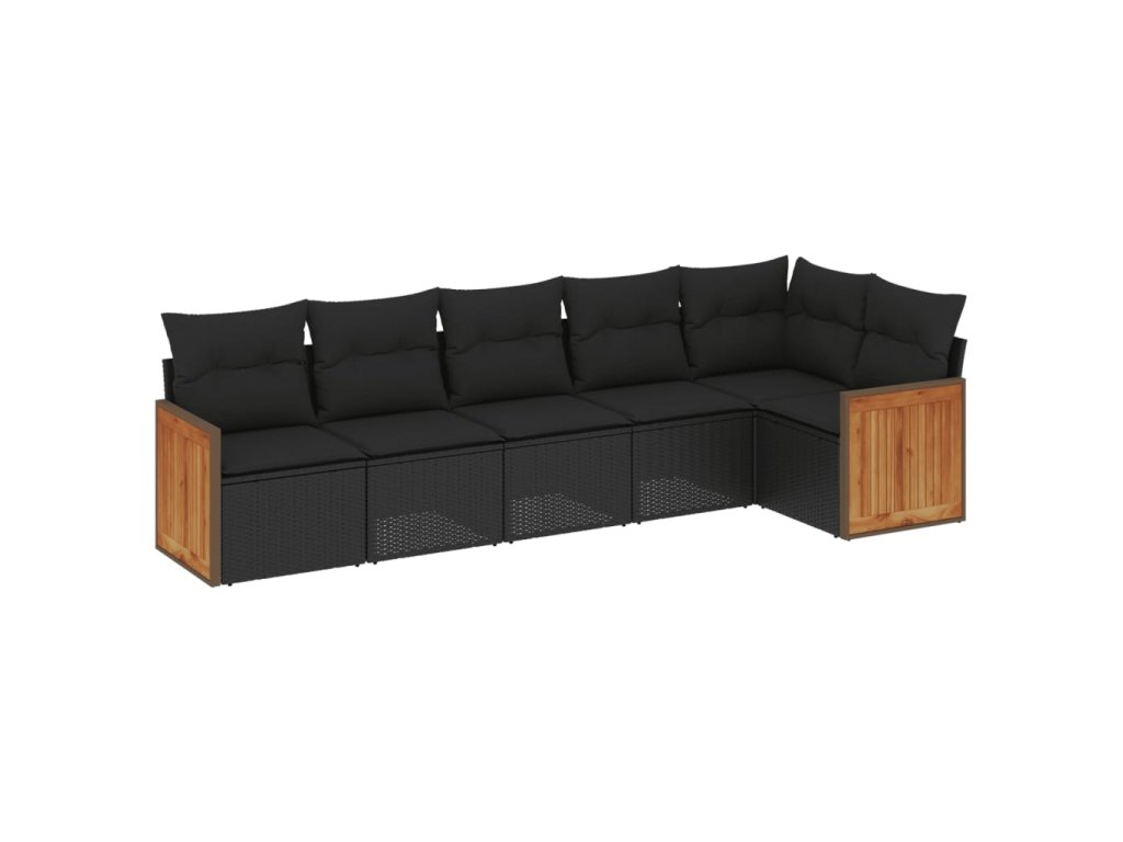6dílná zahradní sedací souprava s poduškami černá polyratan 3227665