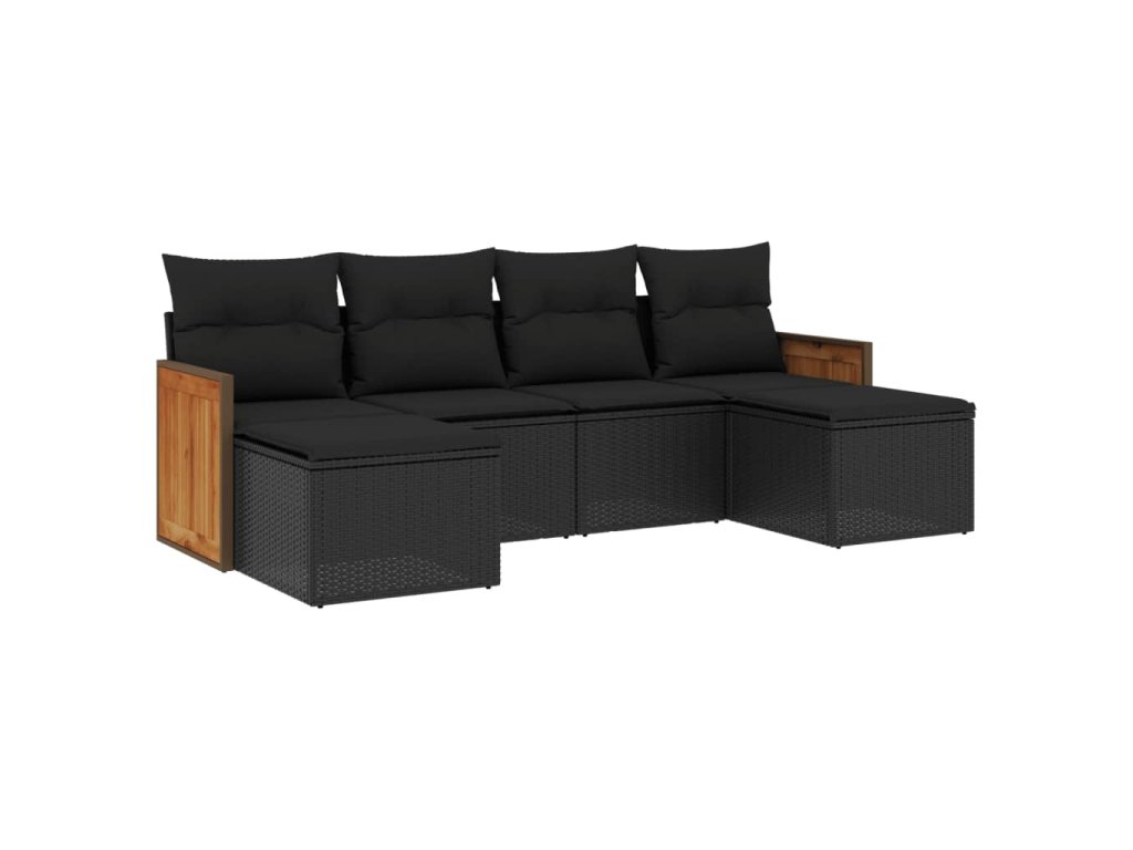6dílná zahradní sedací souprava s poduškami černá polyratan 3227896