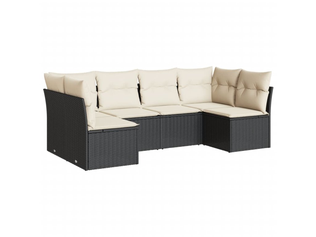 6dílná zahradní sedací souprava s poduškami černá polyratan 3249225