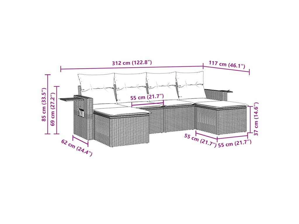 Tato zahradní sedací souprava je dokonalým doplňkem vaší zahrady, terasy nebo dvorku a poskytne vám pohodlné a příjemné místo, kde si můžete povídat s rodinou a přáteli nebo jen tak odpočívat a užívat si pobyt venku.
