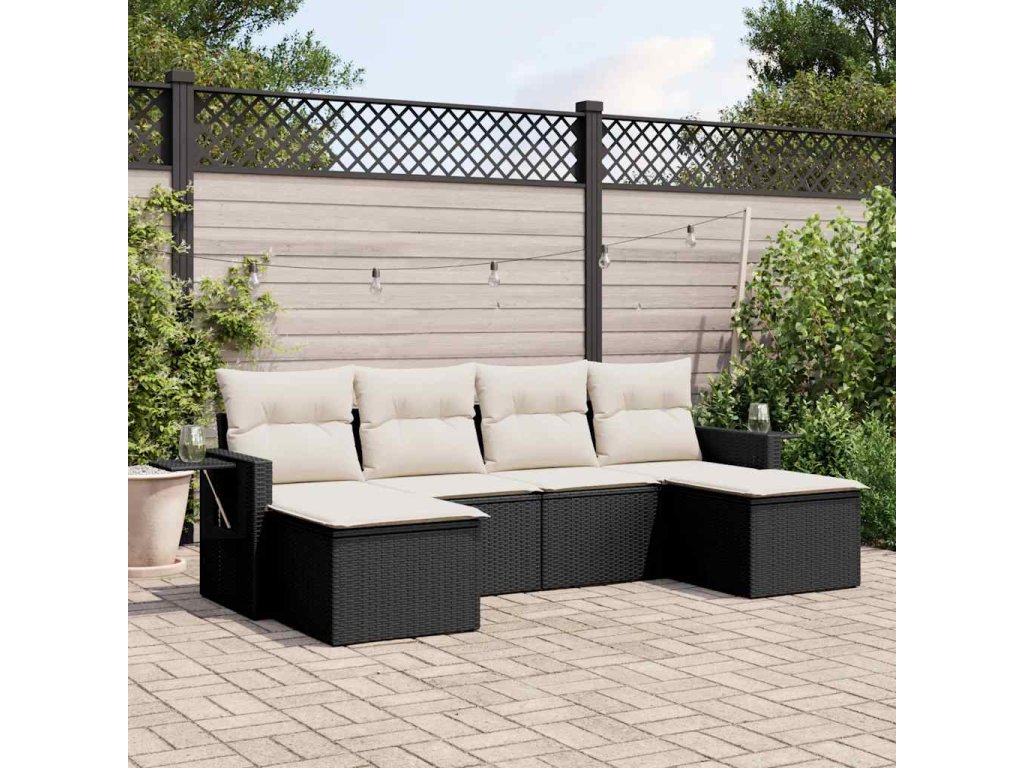 6dílná zahradní sedací souprava s poduškami černá polyratan 3252853