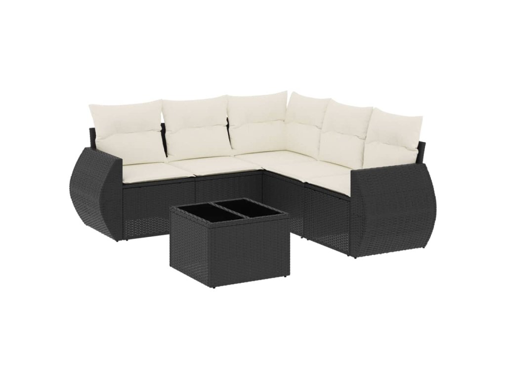 6dílná zahradní sedací souprava s poduškami černá polyratan 3253693
