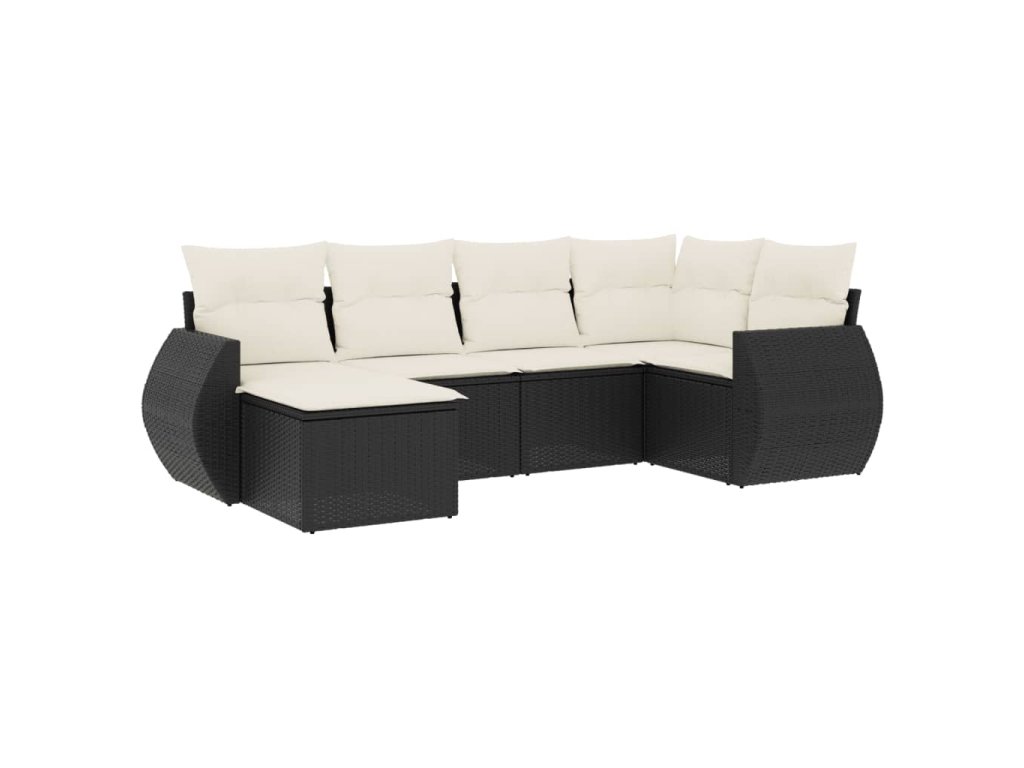 6dílná zahradní sedací souprava s poduškami černá polyratan 3253993
