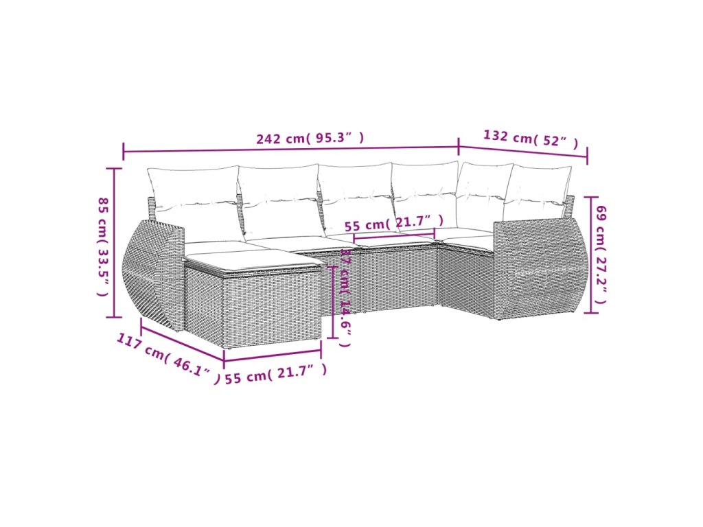 Tato zahradní sedací souprava je dokonalým doplňkem vaší zahrady, terasy nebo dvorku a poskytne vám pohodlné a příjemné místo, kde si můžete povídat s rodinou a přáteli nebo jen tak odpočívat a užívat si pobyt venku.