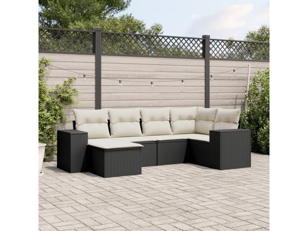 6dílná zahradní sedací souprava s poduškami černá polyratan 3255193