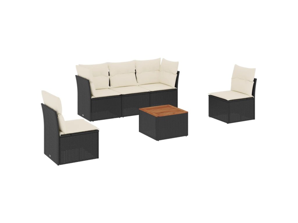 6dílná zahradní sedací souprava s poduškami černá polyratan 3255874