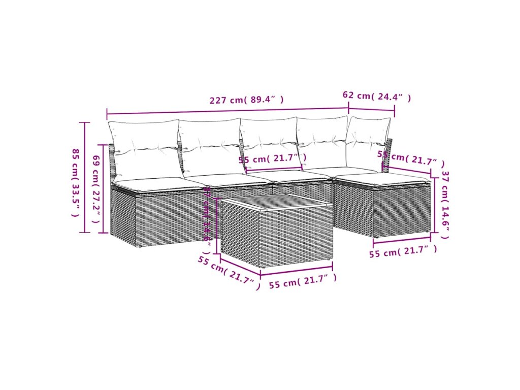 Tato zahradní sedací souprava je dokonalým doplňkem vaší zahrady, terasy nebo dvorku a poskytne vám pohodlné a příjemné místo, kde si můžete povídat s rodinou a přáteli nebo jen tak odpočívat a užívat si pobyt venku.