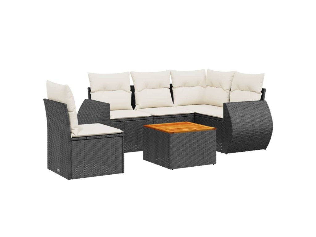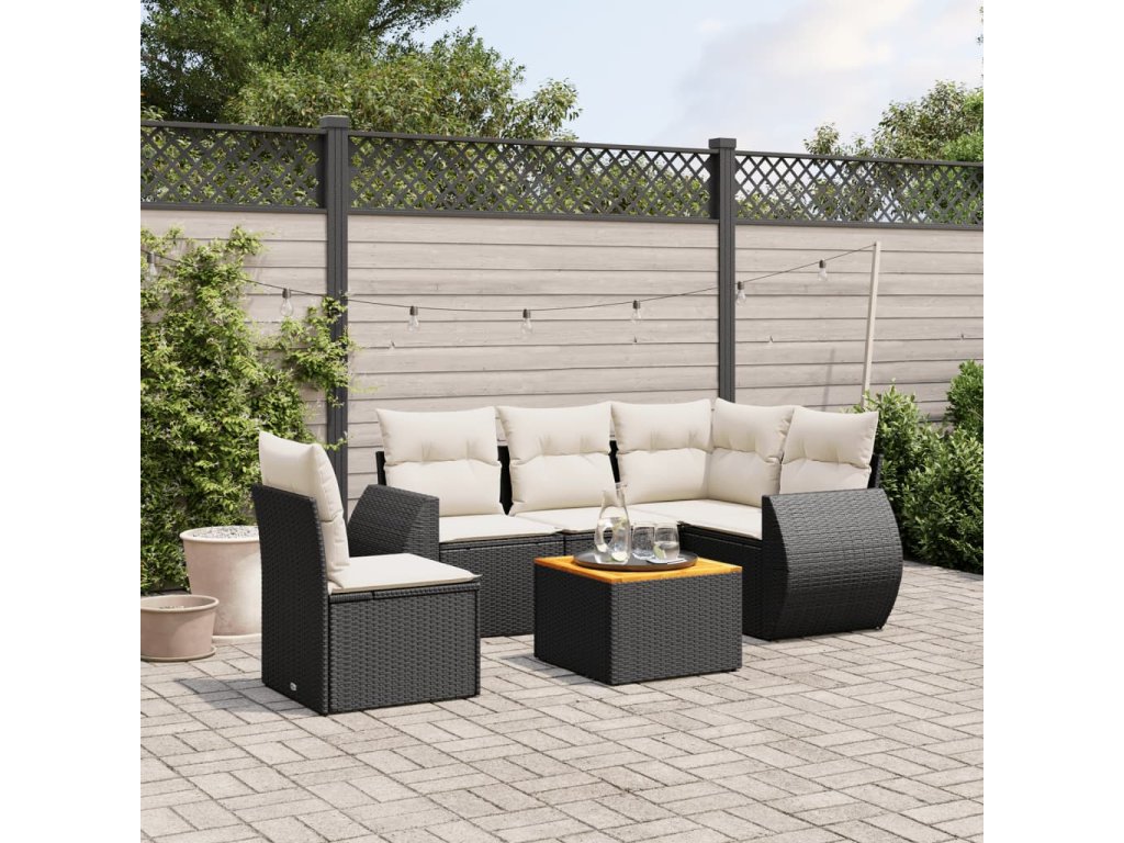 6dílná zahradní sedací souprava s poduškami černá polyratan 3257337