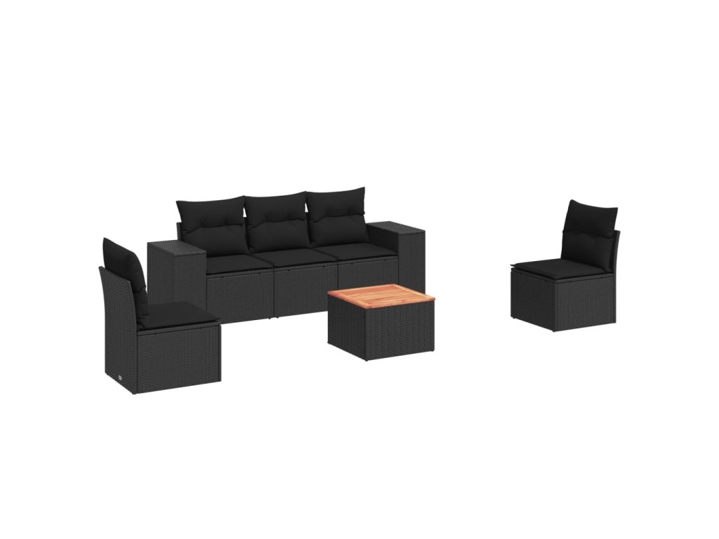6dílná zahradní sedací souprava s poduškami černá polyratan 3257714