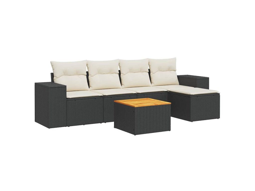 6dílná zahradní sedací souprava s poduškami černá polyratan 3257750