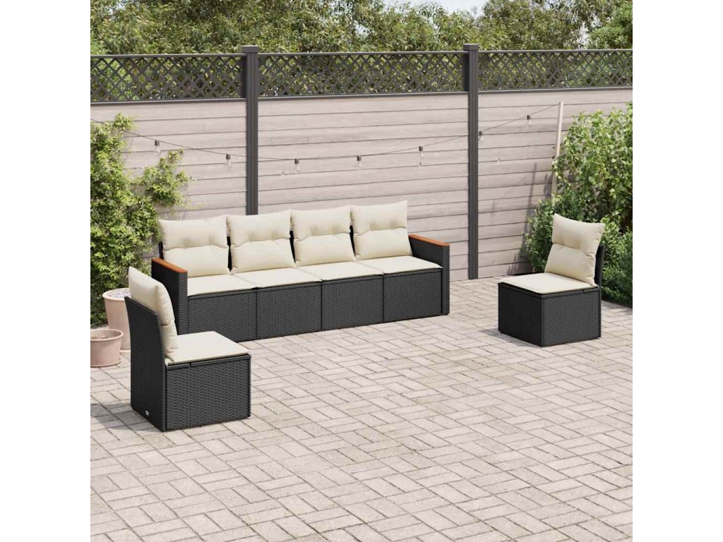 6dílná zahradní sedací souprava s poduškami černá polyratan 3258262