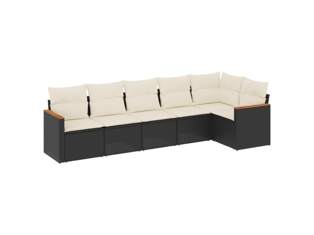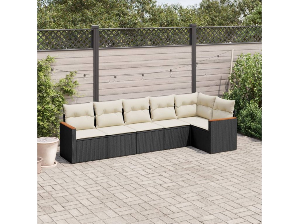 6dílná zahradní sedací souprava s poduškami černá polyratan 3258388
